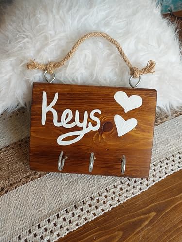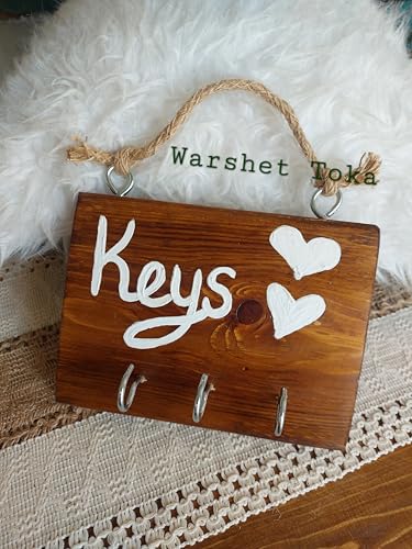 Generic - كيبورد خشبي معلق للمنزل، تصميم ريفي مع مفاتيح، خشب بني طبيعي مع قلوب بيضاء، 3 خطافات للتعليق، حبل من الجوت الطبيعي من وارشيت توكا