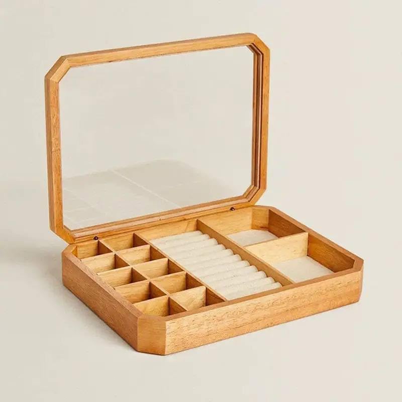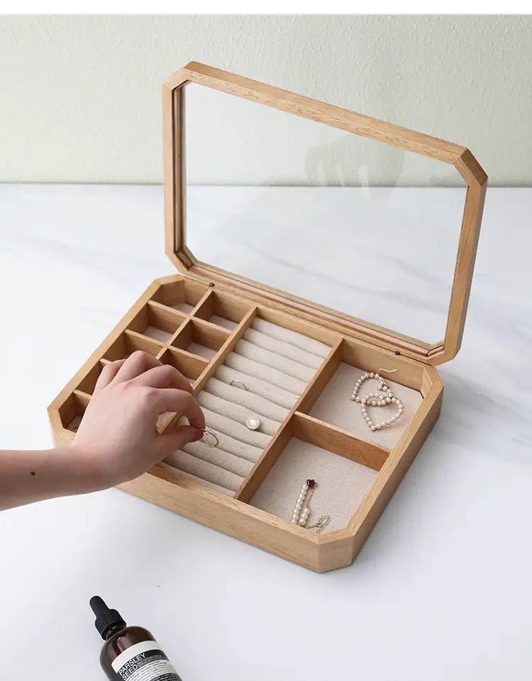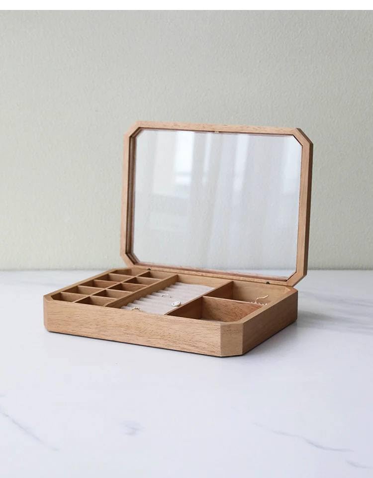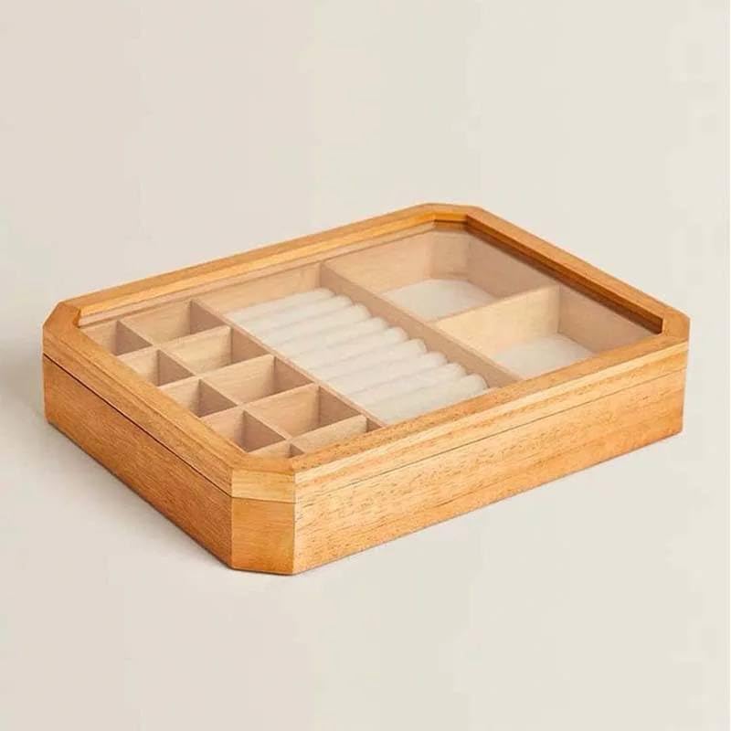 Generic - Wooden Jewellery Box with Glass Lid, 12 Compartments, 30 x 25 x 5 cm