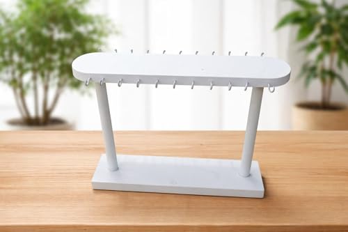 Generic - Wooden Jewelry Display Stand, Necklace and Accessories Organizer with Stable Base and Multiple Hooks, Modern White