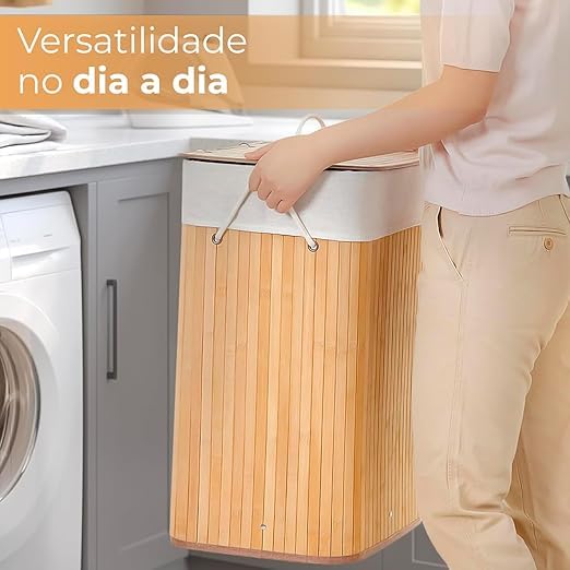 باسكت غسيل خشب – تصميم أنيق ومتين لتجميع وتنظيم الغسيل | خامات طبيعية ولمسة ديكور فخمة | مناسب لغرف النوم AR