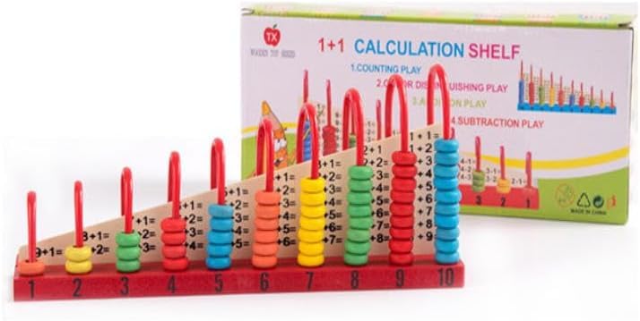 Generic - لوحة تعليمية خشبية للأطفال، رف حساب رياضيات تعليمي، ألعاب الجمع والطرح والتمييز اللوني، مناسب للأطفال، مع ١٠ أعمدة ملونة