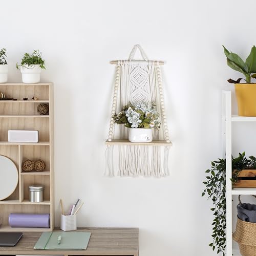 - Handmade Boho Charm: Elevate your space with this hanging boho wall decor, designed with intricate macrame knots, wooden beads, and a sturdy wood shelf; a perfect blend of function and beauty, our modern wall art adds charm to any space