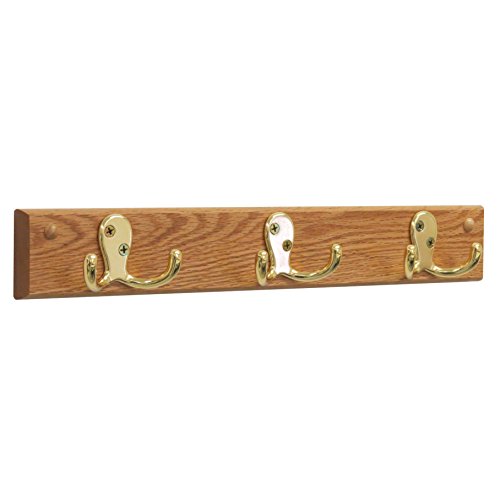 - 15" Solid oak rail has 3 brass-finished hooks with 2 prongs each, for a total of 6 hooks