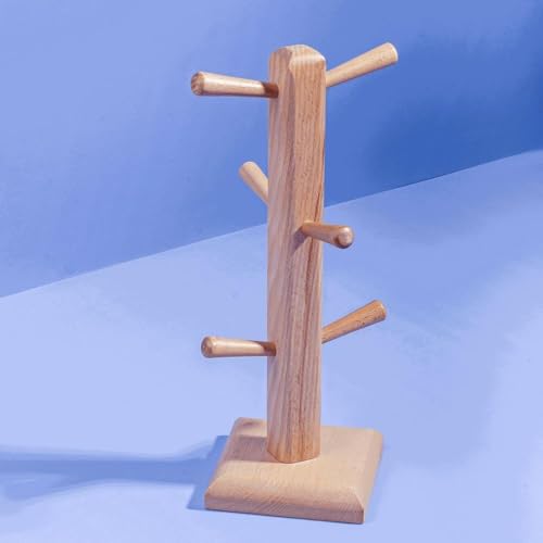 generic - رف منظم اكواب خشبي - حامل من خشب الزان عالي الجودة بـ 6 خطافات | شجرة اكواب قهوة موفرة للمساحة | ملحق عصري ومتين لسطح الطاولة (لون خشبي (قطعة واحدة)