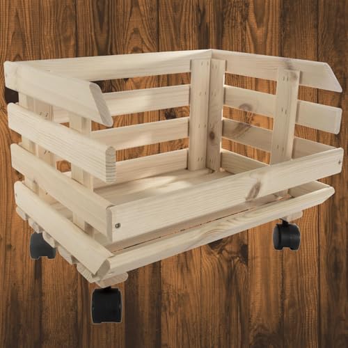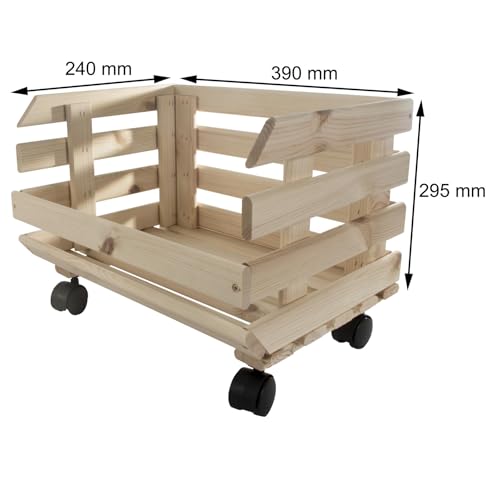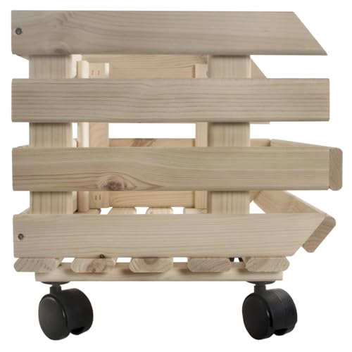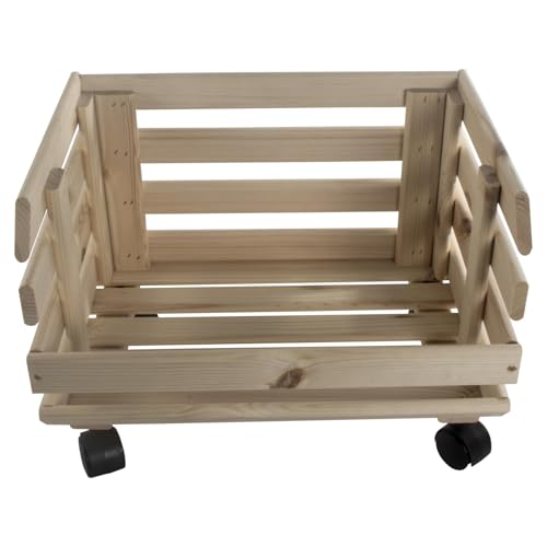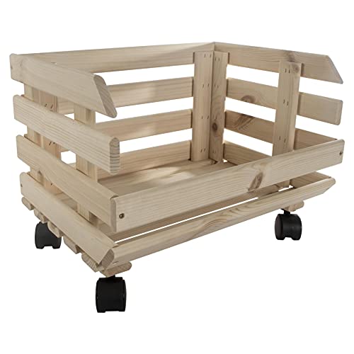 WooDeeDoo - Wooden Multi-purpose Unpainted Storage Box With Wheels | Vegetable Crate Food Storage Rack | Display Shelf Unit | Fruit Basket Kitchen Stand | Utility Stackable Storage | Potatoes Onions Container