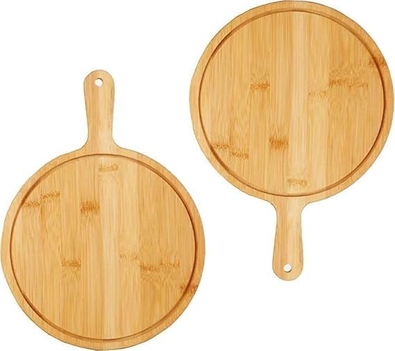 Generic - صينية بيتزا خشبية بمقبض للخبز وتقطيع البيتزا (الحجم: 6 ملليلتر) (دائري، كبير L)