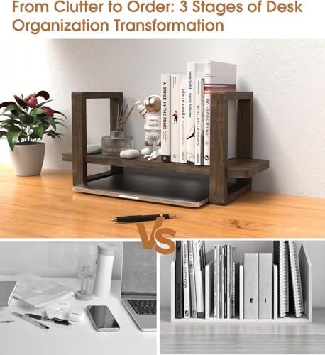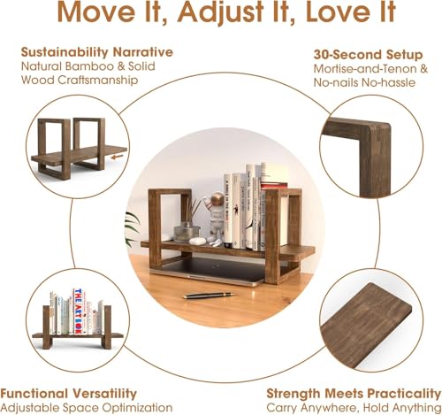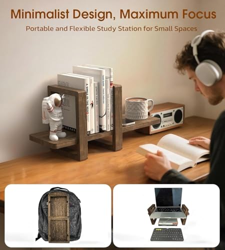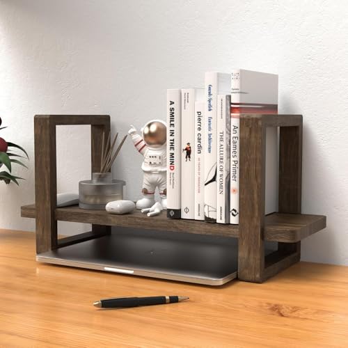 Generic - رف كتب خشبي محمول قابل للتعديل - منظم سطح المكتب متعدد الوظائف للمنزل والمكتب والمطبخ والشرفة، تصميم صغير موفر للمساحة، لمسة نهائية من الخشب الطبيعي، خشب مكربن