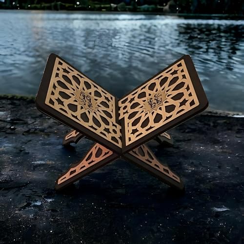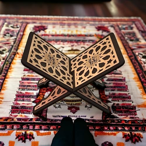 Generic - حامل مصحف من الخشب - حامل كتب أنيق منحوت بتصميم على شكل X مثالي للمصحف والكتب وأجهزة التابلت مع تصميم عرض ثابت متعدد الأغراض، لون بني وأسود