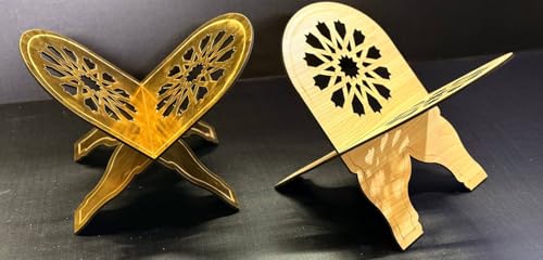 - حامل مصحف خشبي: مصنوع من خامة خشبية عالية الجودة بتصميم أنيق ومزخرف بنقوش إسلامية جميلة تضفي لمسة روحانية مميزة