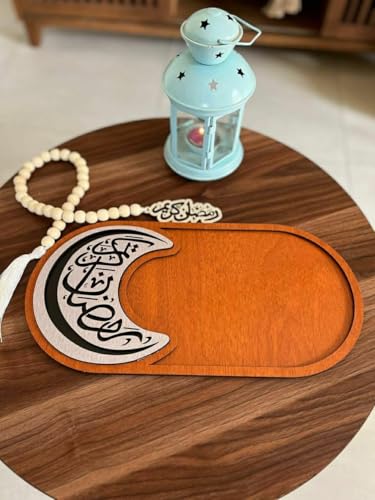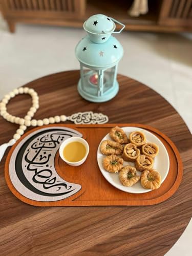 - PREMIUM DESIGN: Beautifully crafted wooden serving tray with elegant crescent moon shape and Arabic calligraphy, perfect for Ramadan celebrations and special occasions