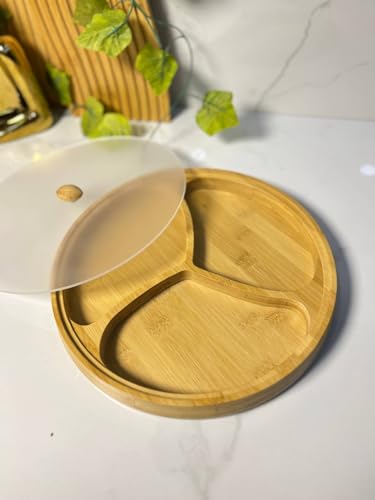 Generic - Wooden Round Serving Plate 3 Sections With Acrylic Cover Natural Wood Tasali Plate