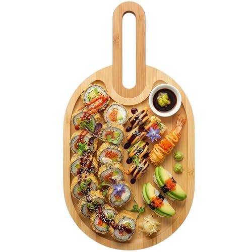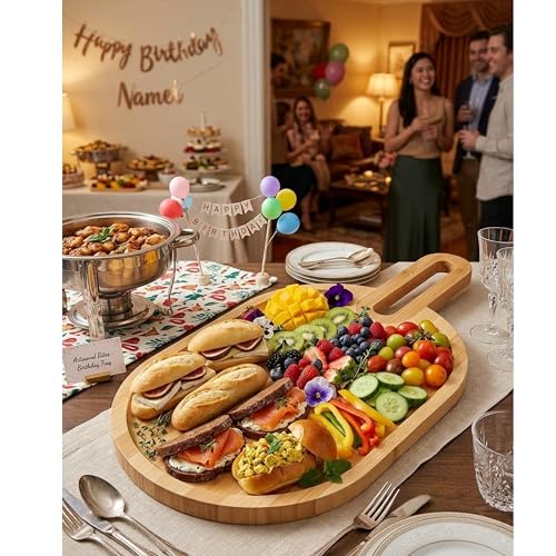 Generic - Wooden Serving Trays Long Party Charcuterie Boards Acacia Wood Platters Serving Cheese Board Rectangular Appetizer Snack Plates Rectangle Kitchen Dinner Platter for Food Dish Cake(20 * 38)