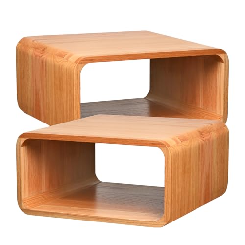 Contempa - Wooden Shelf Stackable Cube Storage Organizer, Small Bookshelf for Bedroom Decor, Office, and Home Decor, Multipurpose Wooden Bookshelves for Modern and Contemporary Spaces, (Red Oak, 2)