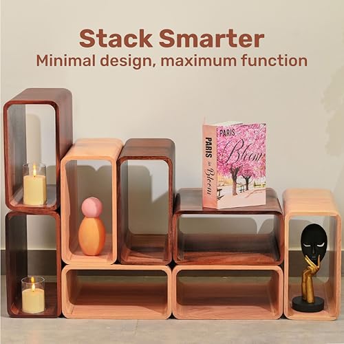- Customizable Storage Solution: Create unlimited stacking arrangements with these modular wooden shelves. Build a small bookshelf, wide book shelf, or tall wooden bookshelves to fit your space and store various items, from books to plants.