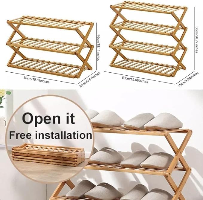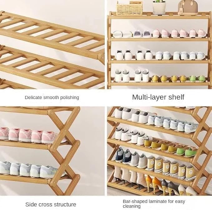 - MULTI-TIER STORAGE: 4-tier foldable shoe rack provides ample storage space to organise and display multiple pairs of shoes whilst maximising vertical space in your entryway, bedroom, or wardrobe