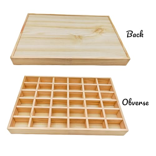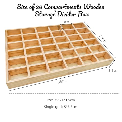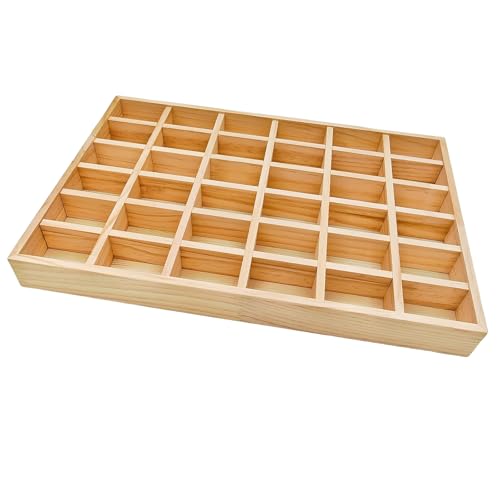 Anktily - Wooden Sorting Tray Grid Display, Wood Storage Divider Organizer Showcase Display Box for Home Craft Office Kitchen Storage (36 Grids)