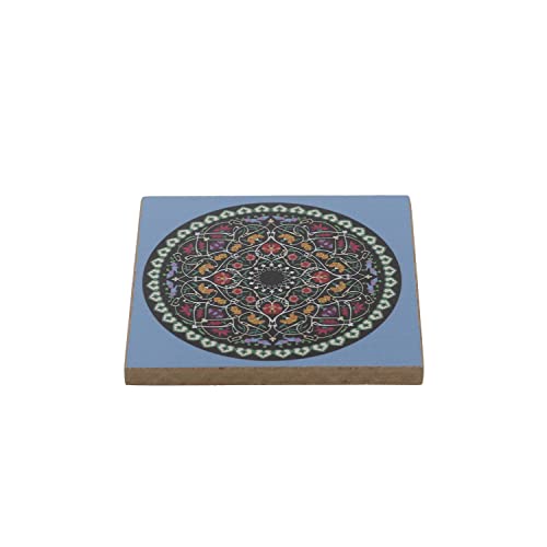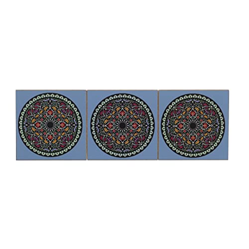 Generic - طقم قواعد اكواب خشب مربعة مكون من 3 قطع تصميم مانديلا- متعدد الالوان