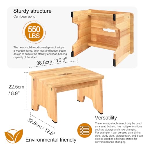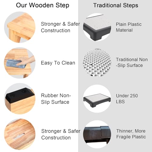 - Heavy duty hardwood structure: Our small wooden stool is made of solid wood, which has longer robustness and durability than plastic footrests and reliably guarantees years of trouble-free use, which is very important for the life safety of children and the elderly.