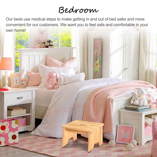 - Rounded corners design and padded, adjustable rubber feet: The adjustable rubber feet of the step stool ensure that the mattress can be adjusted in height and can be used on floors that are not on the top level. The step stool ensures flexible use of adult feet. The wooden stool has rounded corners to protect your family and pets!