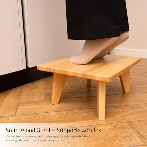 Finehous - مقعد خشبي للبالغين والاطفال - درج خشبي صلب متين، طبيعي