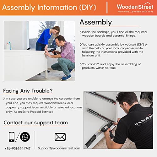 - In case you are unable to arrange the carpenter from your end, you may request Woodenstreet’s local carpentry support team available at selected locations only (As an Extra Prepaid Service).
