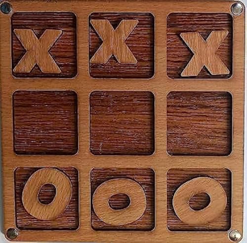 Generic - لعبة لوحية تيك تاك تو الخشبية بتصميم ريفي تقليدي بأشكال X وO