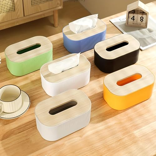 Generic - Wooden Tissue Box - Elegant Bamboo Lid Design with Durable Plastic Body, Perfect for Bedroom or Reception, Multi-Color Options for Modern Interiors