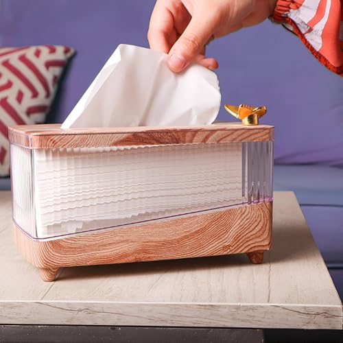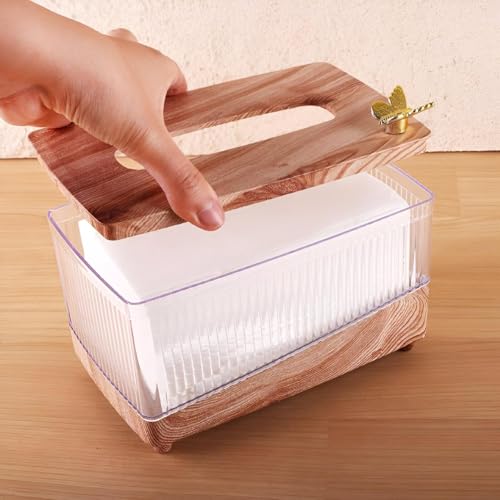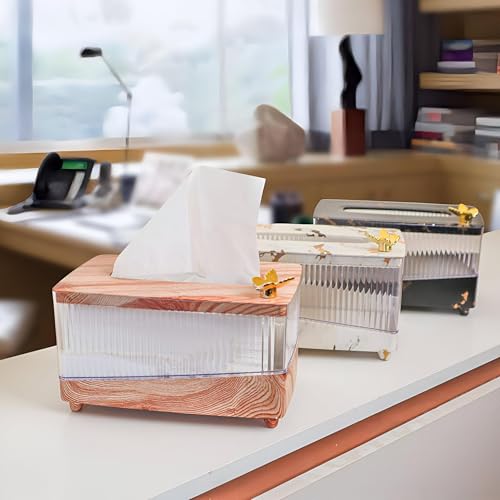 Generic - Wooden Tissue Box - Elegant rectangular design blending natural wood warmth with clear acrylic purity, golden butterfly accent, fits up to 500 tissues for home or office luxury decor