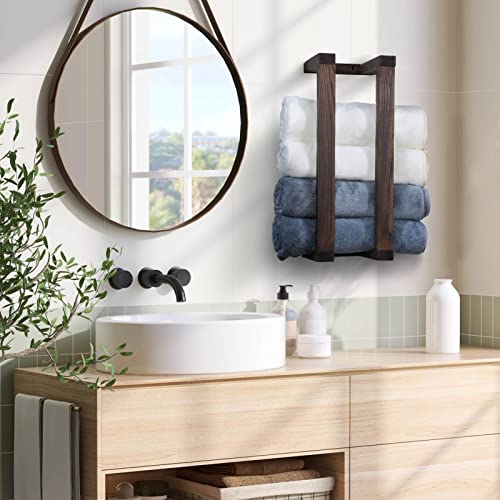 - UNIQUE DESIGN - MORE DECORATIVE: This wooden towel rack provides a beautiful and simple way to store and display your towels. Compared to metal towel racks, the wooden towel organizer is more decorative, with colour that easily match other wooden furniture and create a warm feeling for your bathroom. The natural variations in wood grain patterns make all towel racks unique.