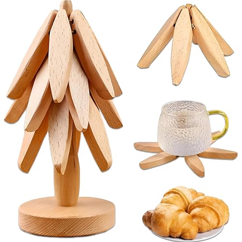 Generic - قاعدة خشبية - قاعدة اكواب مصنوعة بشكل جميل على شكل شجرة لتقديم الاطباق الساخنة، مثالية لديكور طاولة المطبخ والمنزل وهدية مدروسة