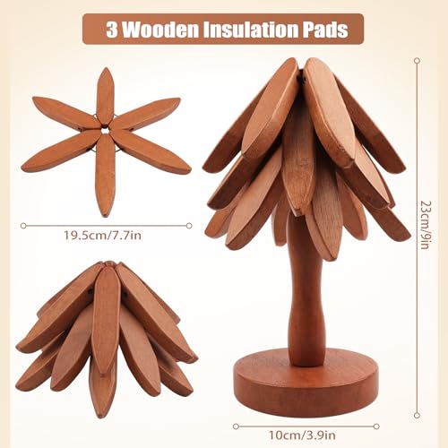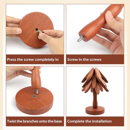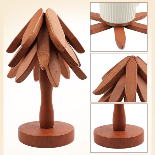 - Space-saving storage: the wooden hot dish rack adopts automatic folding design, when not in use, the coasters can be neatly stored on the tree-shaped stand, greatly reducing the space occupied