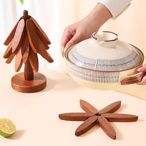 YIYA - Wooden Trivet for Hot Dishes Durable Wood Trivet Tree Shape Insulation Mats for Hot Dishes, Pots, Teapots, Fondue, Bowl