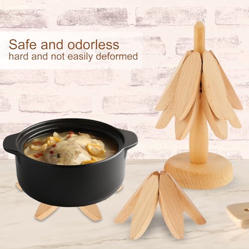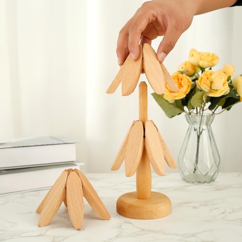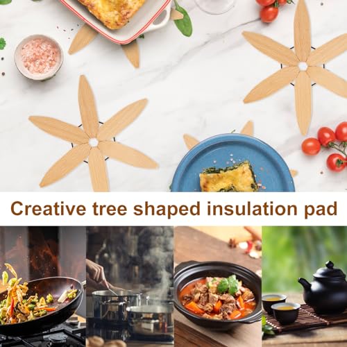 - 【Tree-Shaped Design and Easy Storage】This wooden trivet mat owns creative tree-shaped design and unbreakable elastic leather straps used, our heat resistant wooden table mats can automatically unfold when the mats are put down and close automatically when picked up. Also, the wooden trivets will add more elegance for your table and kitchen countertop when not in use in the kitchen.