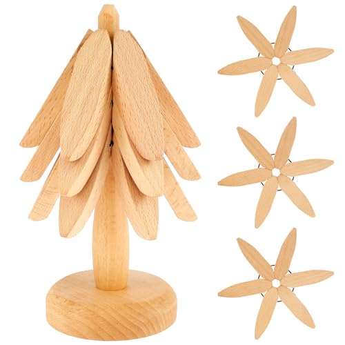 - 【Unique Decorative Trivet Pads】The wooden trivets have 2 colors (ebony/beech) available and you can choose one set of tree insulated mats that suits your kitchen color. The Christmas tree-like appearance can beautifully decorate your kitchen countertop. It is a unique wooden gift for your home.