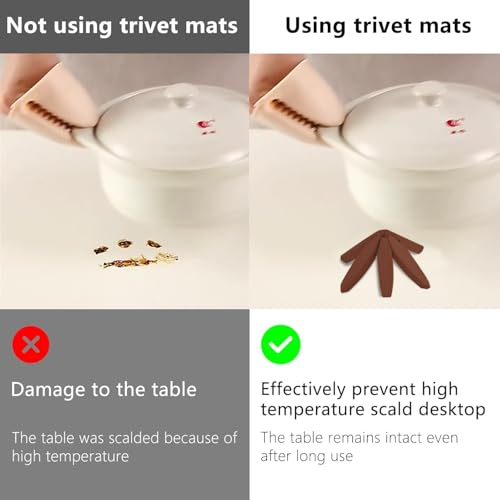 - MULTIPURPOSE The trivet for hot pots and pans is unfolded, cups, bowls, plates, pans, teapots, etc. can be placed. Can be used for glass, marble, wooden desks, etc. to reduce the traces on the desk