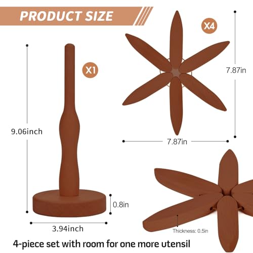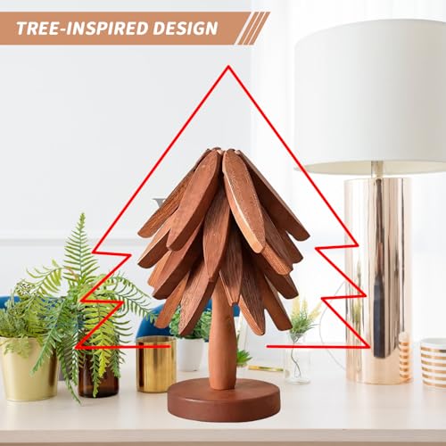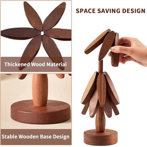 Ayolofei - Wooden Trivet for Hot Food, Wooden Coaster Set Tree Shape Wooden Coasters for Hot Pots, Tableware and Cups, 4 Coasters + 1 Round Stand (Walnut)