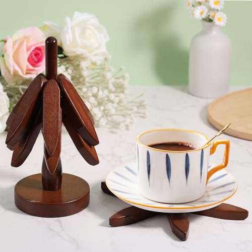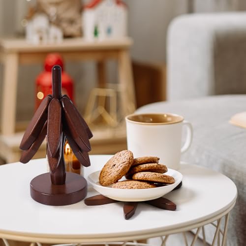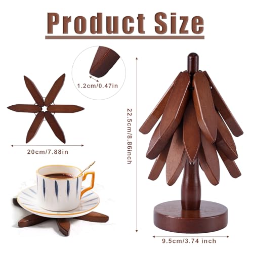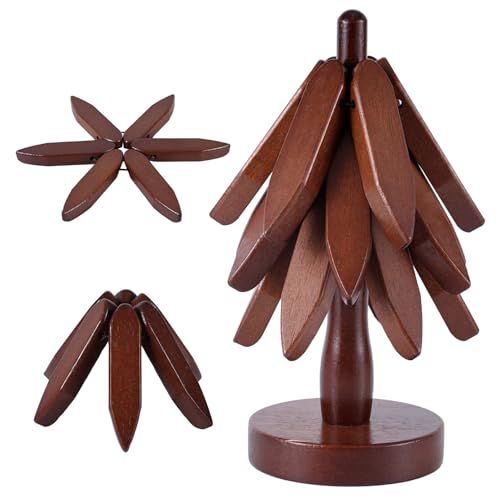 Gosknor - مجموعة حامل خشبي للاطباق الساخنة، 3 طبقات على شكل شجرة مع حامل خشبي للاواني والمقالي الساخنة، حامل اواني خشبي للمنزل