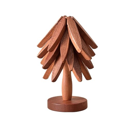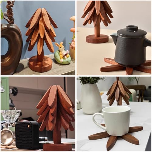 WJFORLION - Wooden Trivet Tree, Wooden Trivets for Hot Dishes, Wooden Tree Trivet Set, Tree Shaped Wooden Pot Trivet, Hot Pots and Pans Insulation Mat, 4 Wooden Trivet + 1 Stand (Brown)