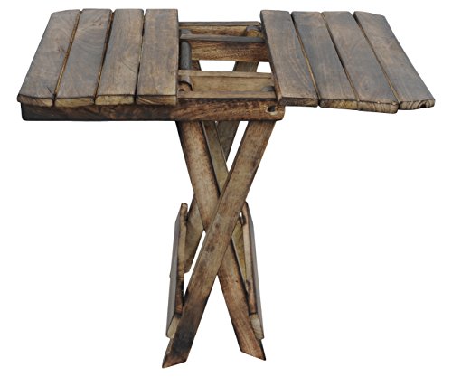 WOODENCLAVE - Handcrafted Wooden Portable Folding Stool Table Camping Table for Travelling Picnic Lawn Outdoor - Dark Brown, Set of 1
