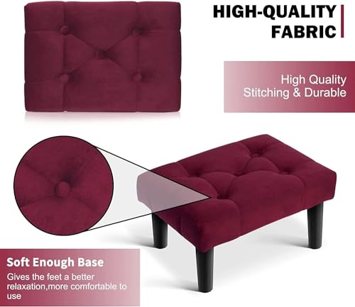 Woodilla - Luxury Lounge Footrest - Living Room/Office/Kitchen Stool - Small Ottoman - Red