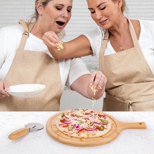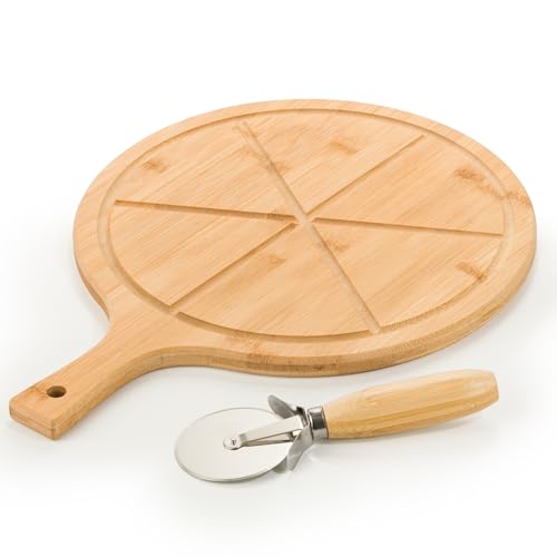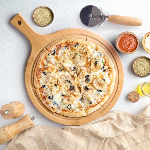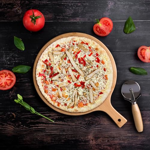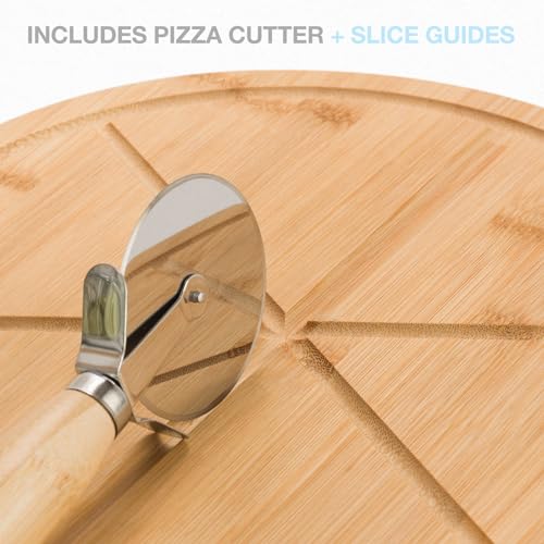 - Pizza Cutter Included - Pizza cutter is a handy tool for slicing through your pizza with ease. It has a stainless steel blade and a comfortable round bamboo handle for effortless cutting.