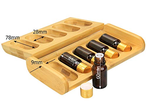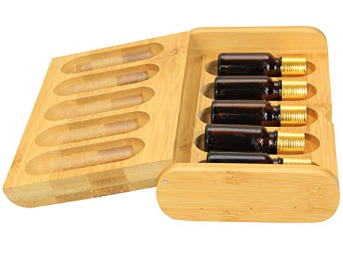 - It features 5 slots for 12ml essential oil bottles each. Oils are not included.
