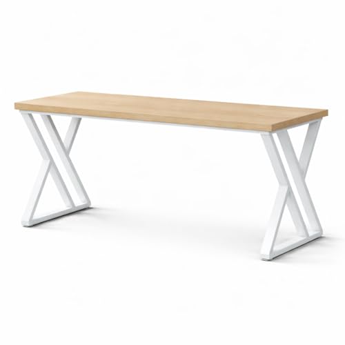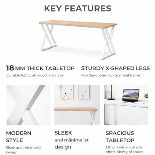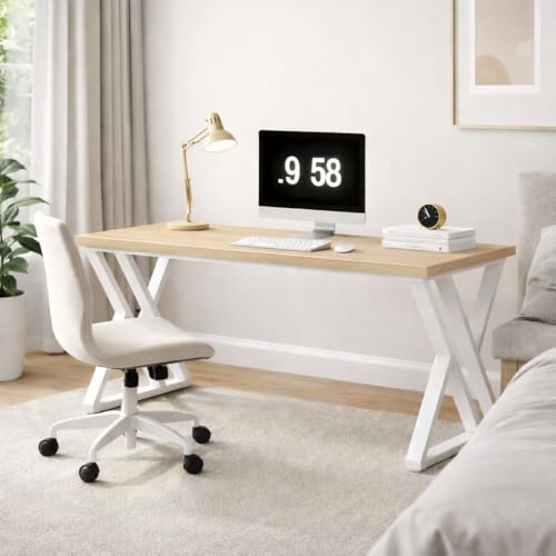 woodx - مكتب صناعي عصري بارجل معدنية باطار على شكل حرف X من وودكس، طاولة مستطيلة بنمط خشبي، قاعدة ستيل شديدة التحمل، مكتب منزلي او مكتب دراسة او مساحة عمل (لون خشب طبيعي)