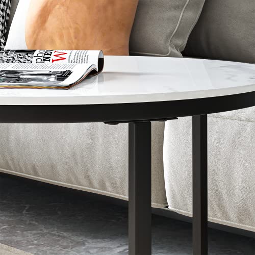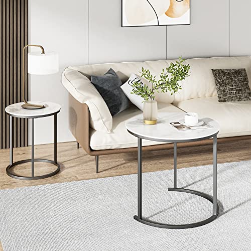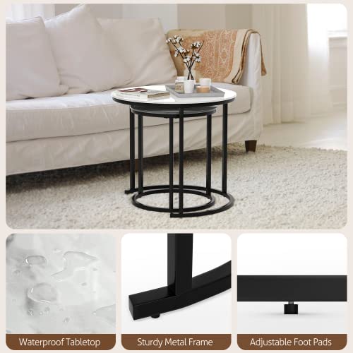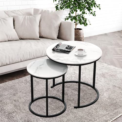 Woodx - Woodx Round Coffee Table Set of 2, Modern Accent Marble Texture Coffee Tables for Living Room, Nesting Table for Reception Room and Office Room(Black & White)