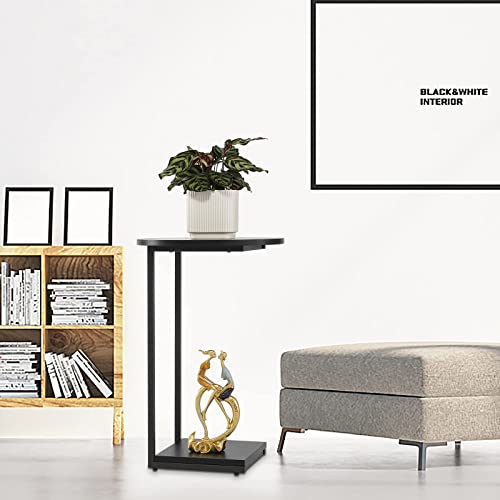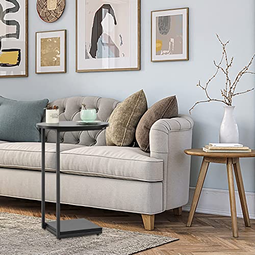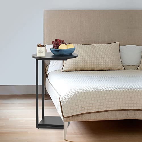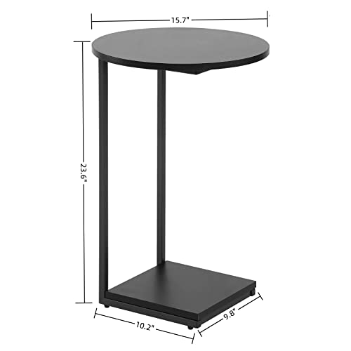 - C shaped side table premium materials: Black side table constructed with strong square tube and compression plate frame,it is light,strong and eco-friendly.Round table it weighs only 9 pounds,can be moved easily