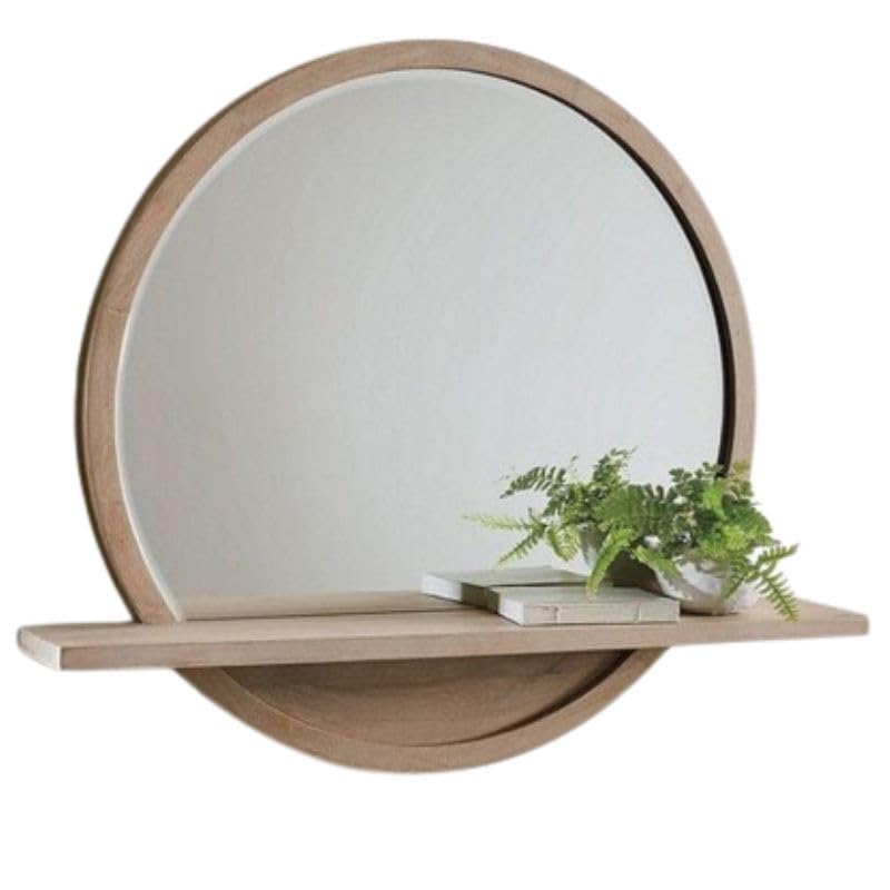 Generic - مراية خشبية مع رف صغير، 60 × 60 سم، مراية مستديرة، طراز حديث.