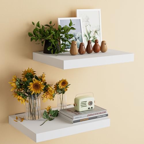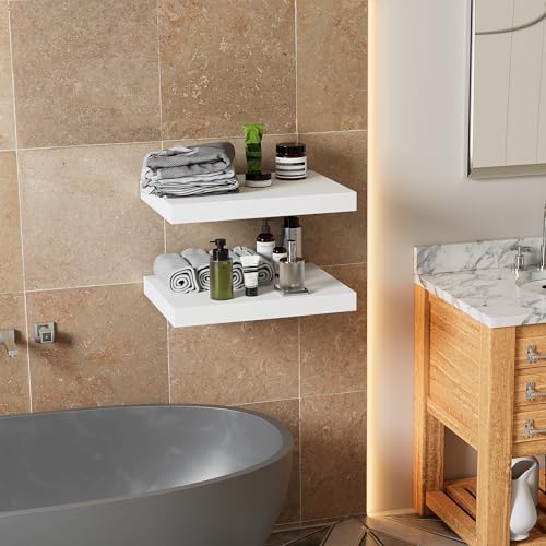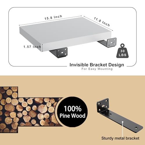 WOPITMER - 12 Inch Deep Floating Shelves for Wall - Live Edge Floating Shelves Set of 2, 16" Wide X 12" Deep Wall Shelves, Pine Wood Floating Shelves for Wall, White Floating Shelves for Any Room, White