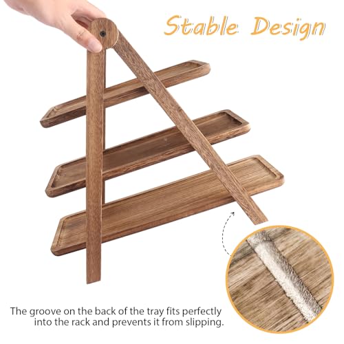 - High-Quality Craftsmanship: Made from high-quality wood, these serving trays are more aesthetically pleasing and safer than plastic or metal alternatives. They are free from glue and PVC, ensuring environmental friendliness and smooth surfaces. Each tray is beautifully sculpted by hand, offering exceptional durability and toughness. The grooves beneath the boards provide a perfect fit for the stand, ensuring stability