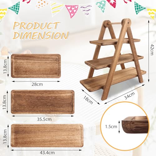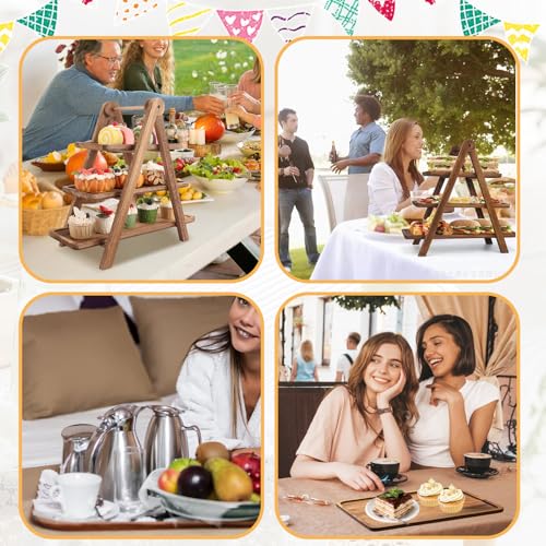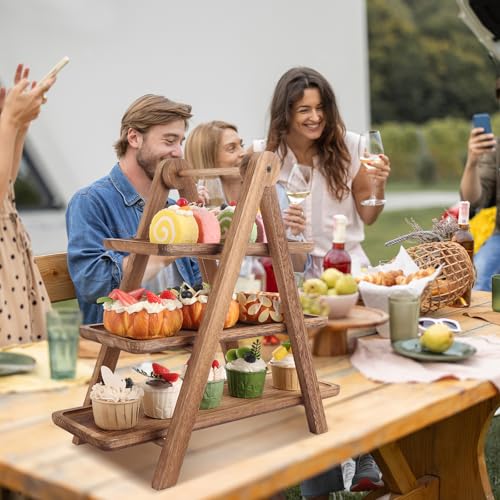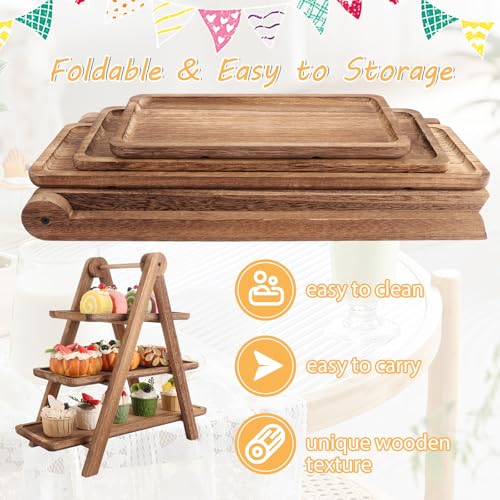WOPPLXY - WOPPLXY Wooden 3 Tier Serving Tray, Rustic Foldable Tiered Cupcake Stand, Decorative Wood Serving Platter Tray for Wedding, Birthday, Party, Picnic