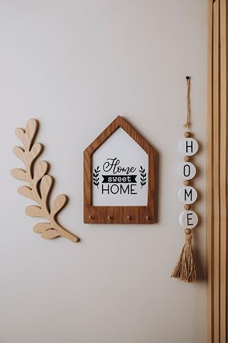 - RUSTIC DESIGN: House-shaped wooden key holder featuring elegant 'Home Sweet Home' typography with decorative leaf motifs and natural wood finish for timeless farmhouse charm